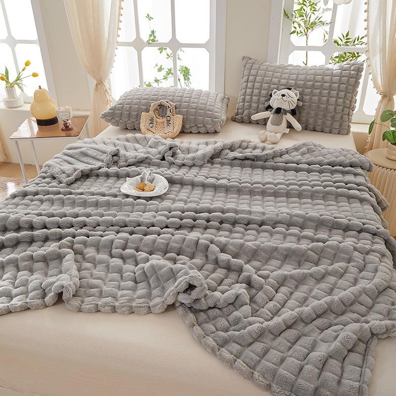 Hot Selling Modern Soft 100% Polyester Anti-Pilling Portable Four Seasons Hotel Bedding Solid Color Bubble Fleece Flannel