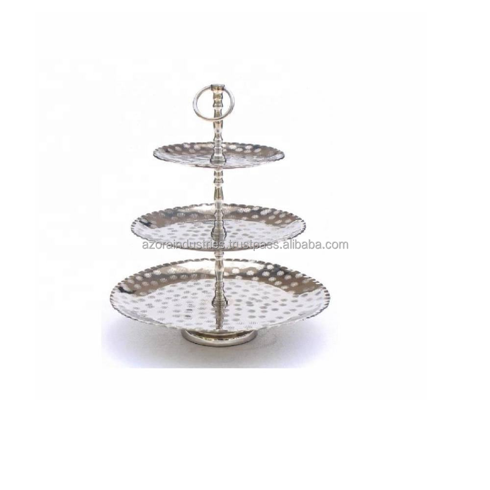 Hot Selling Modern 3-Tier Nickel Plated Hammered Aluminium Cake Stand for Weddings and Fruit Displays-Azora Industries