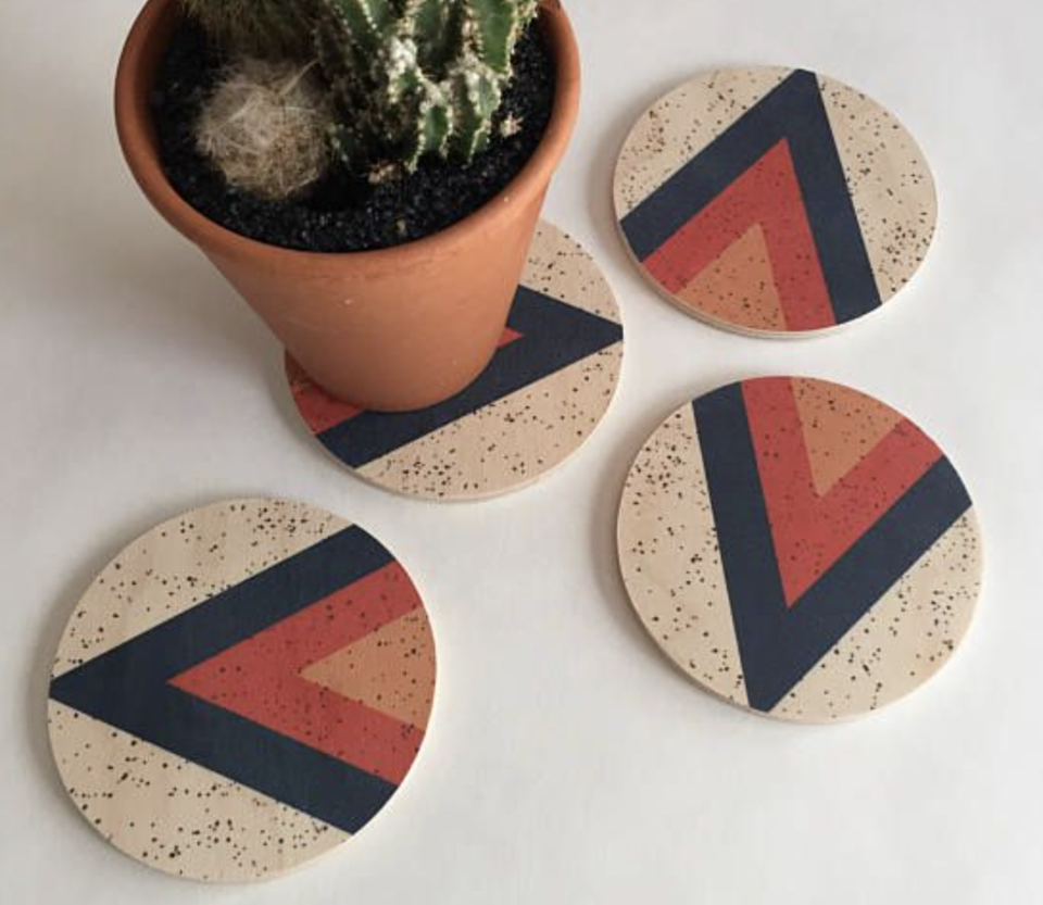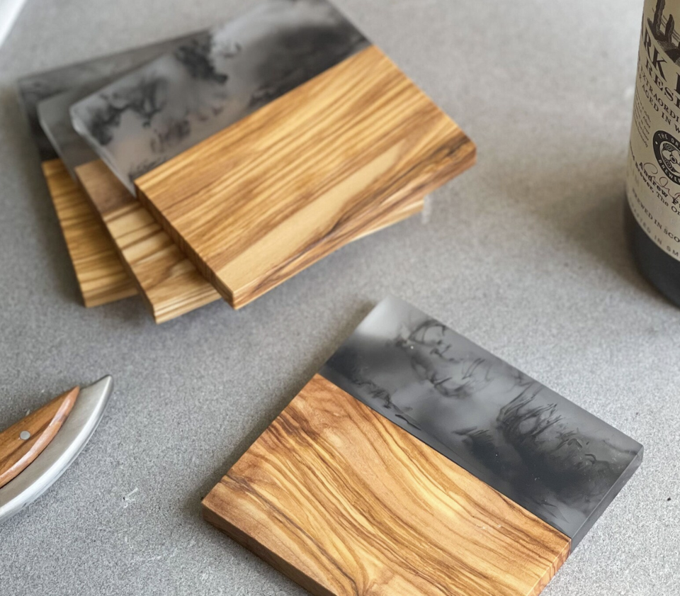 Hot Selling Modern White Wooden Coaster Square Mats Pads Heat Resistant Eco-Friendly Reusable Table Top Decoration Metal Stand