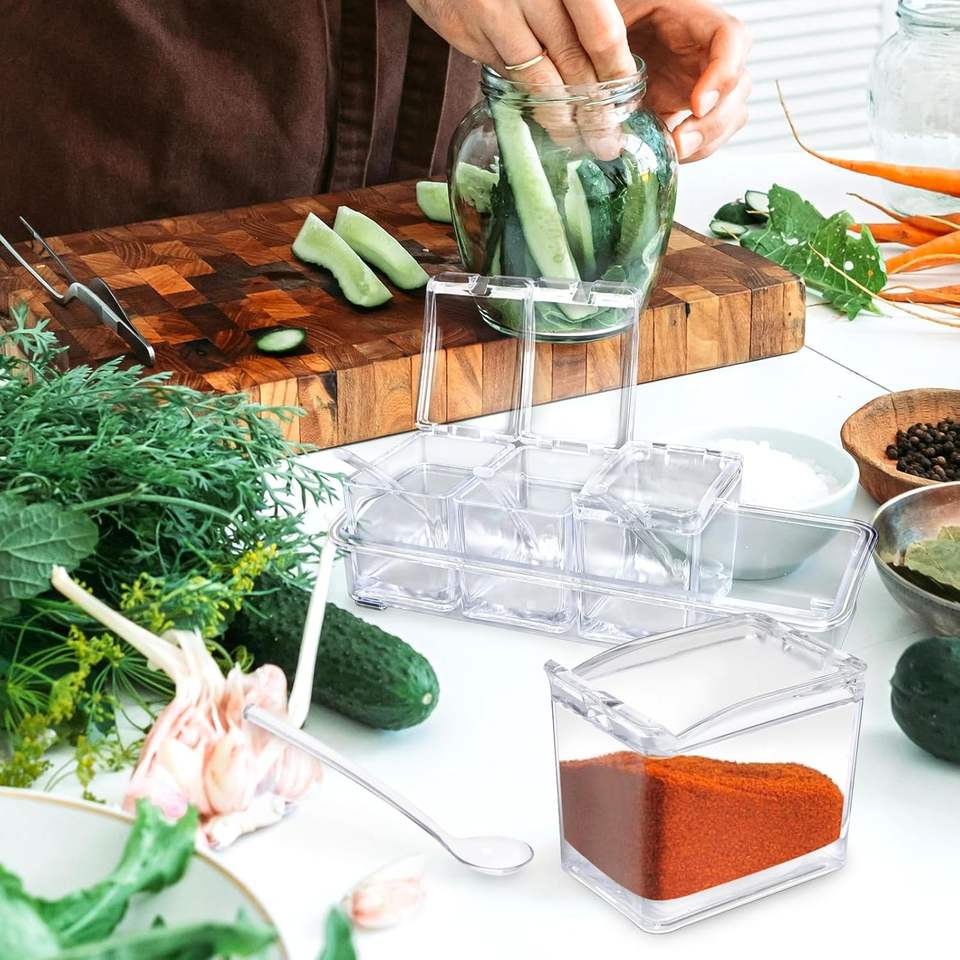 Hot Selling Modular Modern Spice Organizer 4 Compartment Adjustable Acrylic Custom Logo Seasoning Storage Display Racks