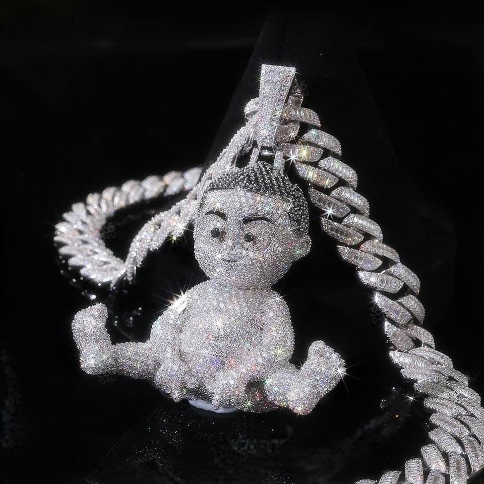 Hot Selling Moissanite Pendant Custom Font Rabbit Bail 925 Silver Iced Out Vvs Custom Moissanite Pendant