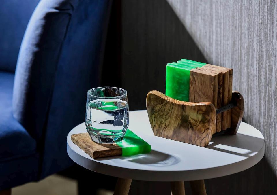 Hot Selling Multicolor Epoxy Resin Cup Coasters, Classic Wooden Coaster with Marble Stone Look Lining