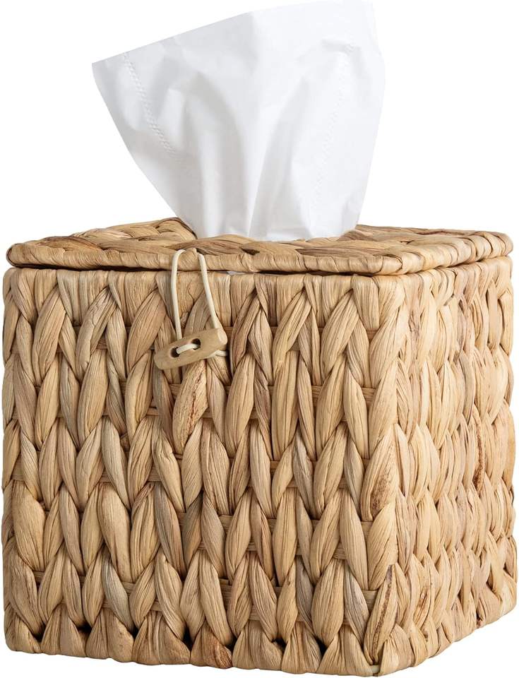 Hot Selling Natural Eco-Friendly Handmade Bamboo Luxury Beige Tissue Box Customized Packing Water Hyacinth Decoration Made