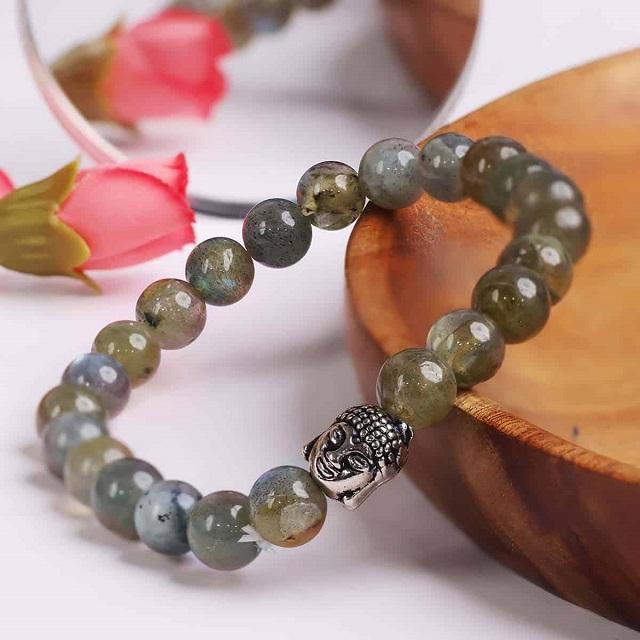 Hot Selling Natural Labradorite Handmade Crystal 8mm Buddha Bracelet for Meditation & Protection & chakra healing On Sale