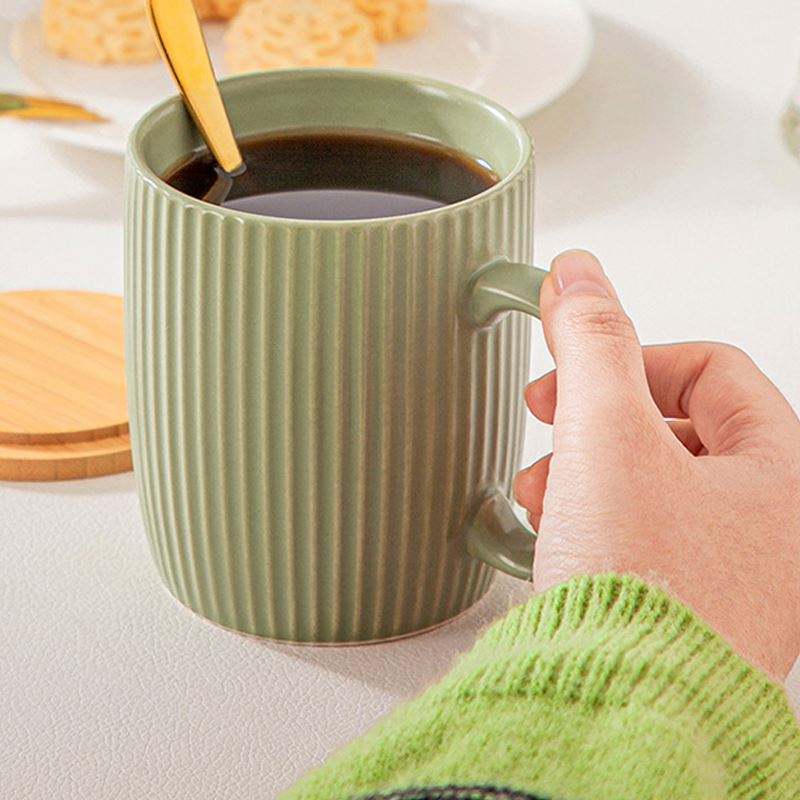 Hot Selling New Creative Simple Makaron Color Vertical Pattern Ceramic Mug With Cover Office Coffee Cup