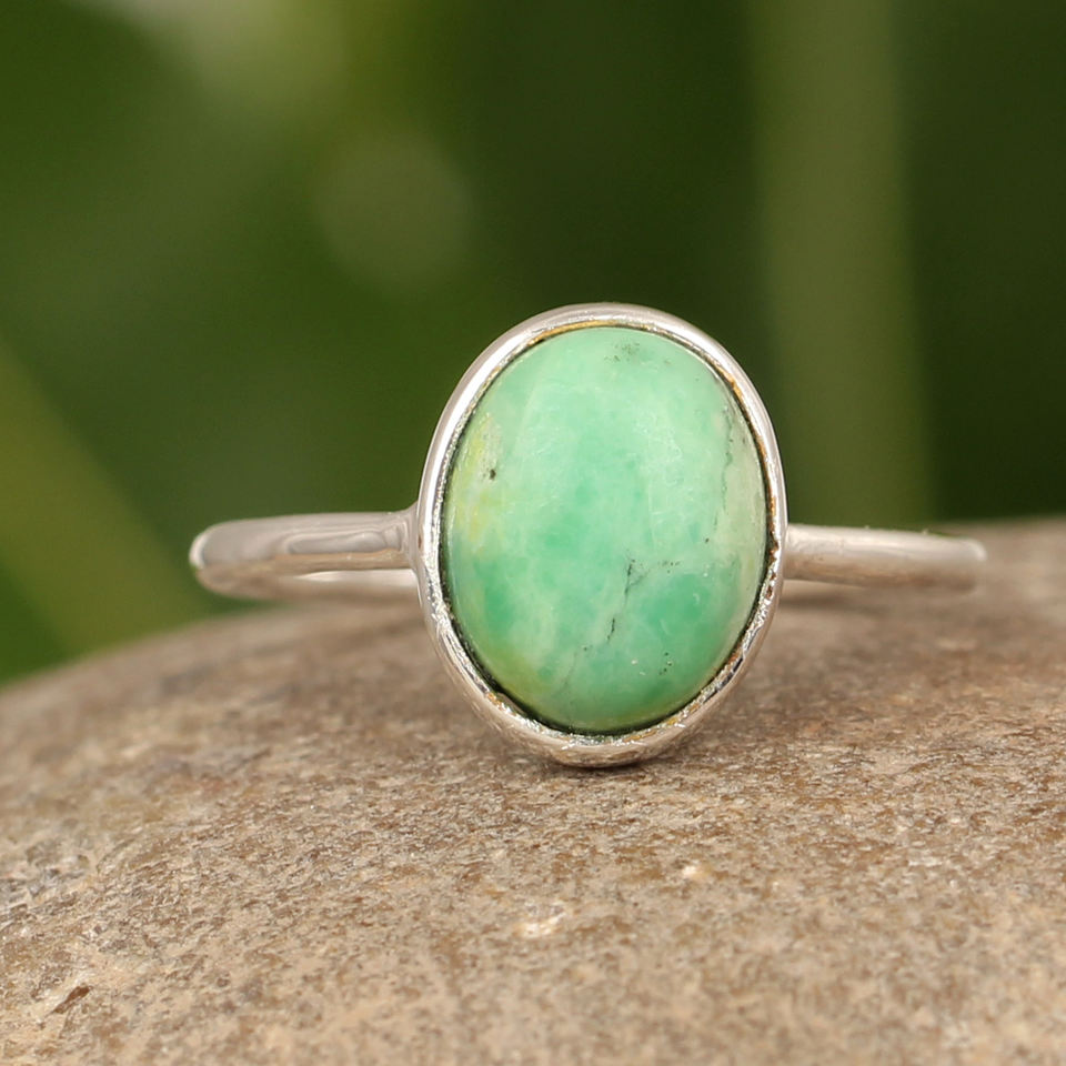 Natural Chrysoprase Gemstone Sterling Silver Ring