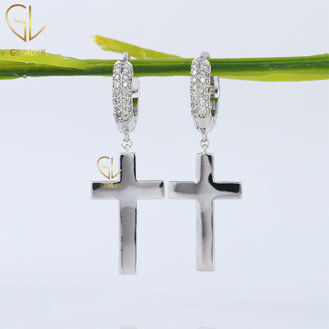 Hot Selling New Design 925 Silver Round Cut VVS Moissanite Diamond Cross Hoop Earrings Jewelry for Women Men