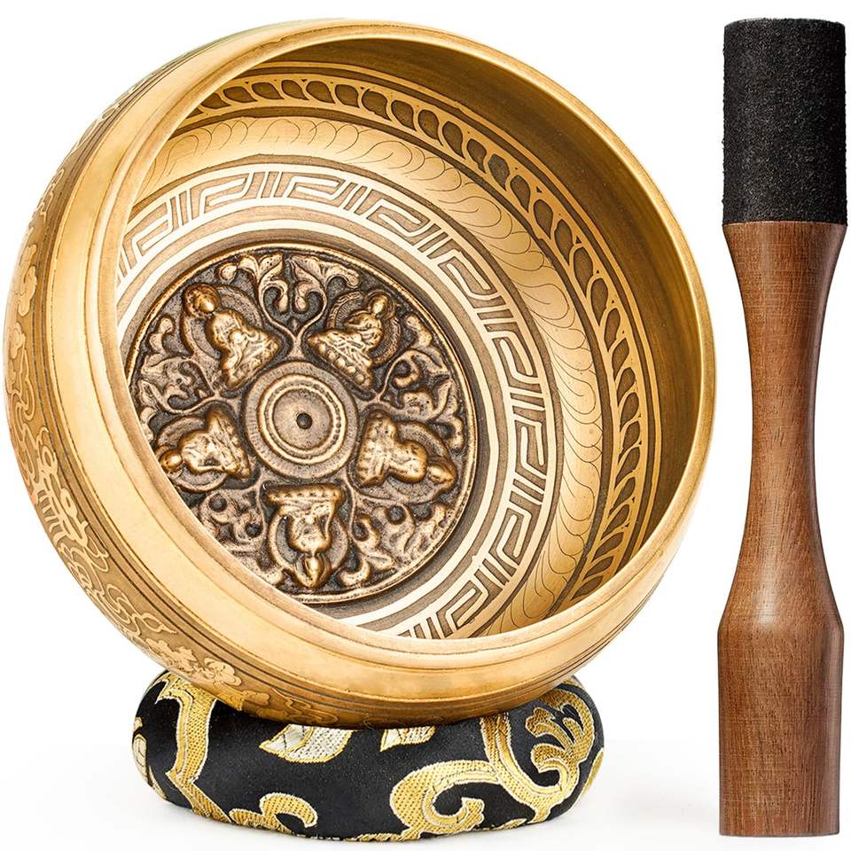 Hot Selling New Design Latest Model Singing Bowl Tibetan Singing Bowl With Golden Mantra Wooden Stick for Sound Production