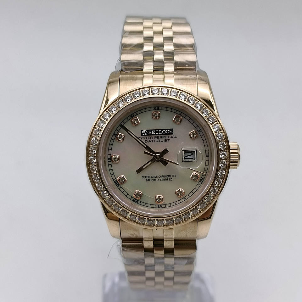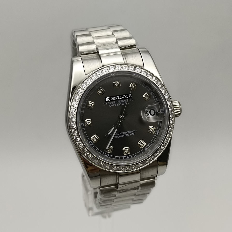 Hot Selling New Design SEILOCE NH35 Mechanical Watch Luxurious Automatic Chronograph with Diamond Stainless Steel Lover's Watch