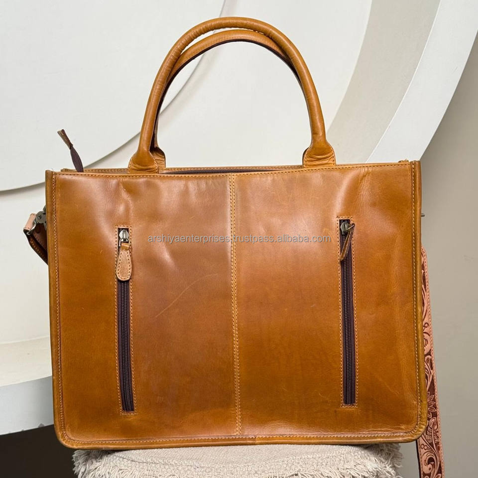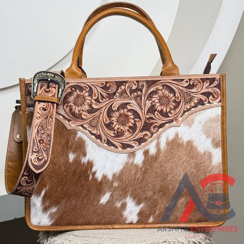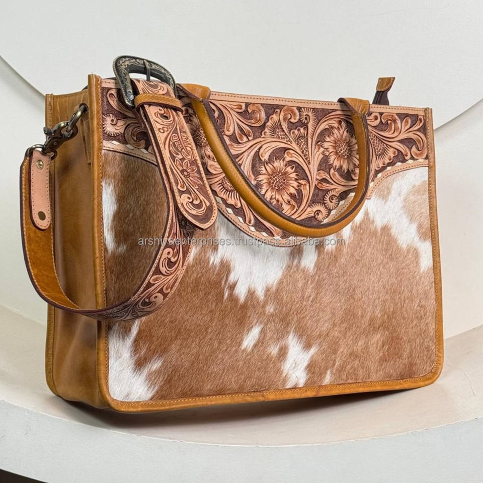 Product name:Hand Tooled Cowhide Leather Shoulder Tote Bag