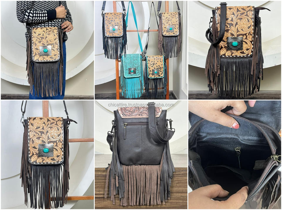 Product name:Hand Tooled Genuine Leather Fringe Crossbody Bag