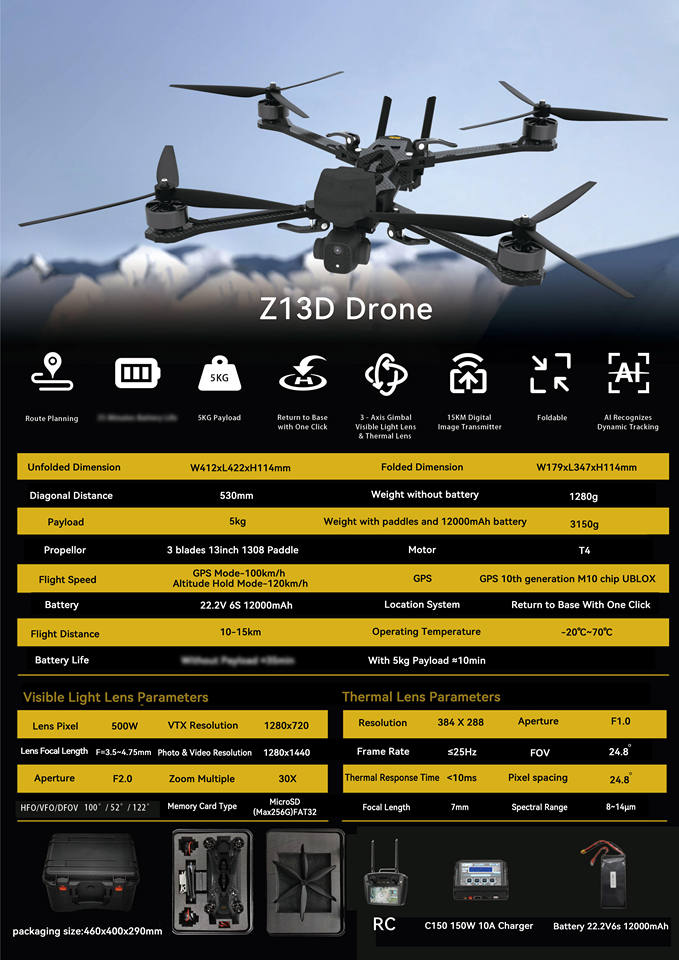 Hot Selling New Racing FPV Z13D Drone 5KG Payload 4K Camera 10KM Flying GPS AI Tracking Brushless RC drone Factory Straight Hair