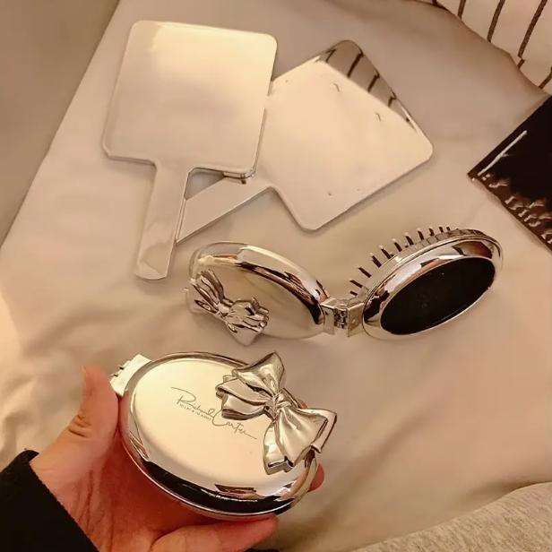 Hot Selling New Silver Oval Cartoon Portable Folding Airbag Comb Cute High Value Portable Makeup Comb