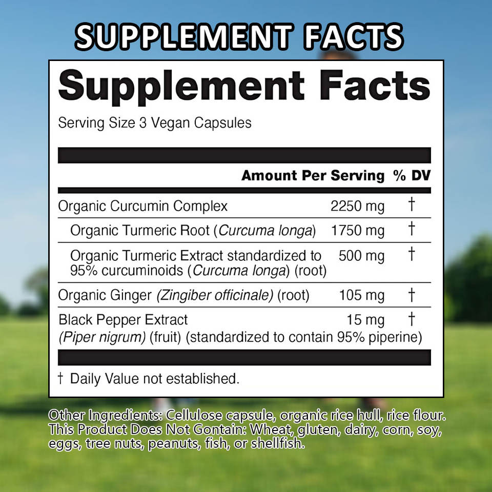 Main Ingredient:Organic Turmeric Root Powder, Burdock Root Powder, Organic Turmeric Root Extract, Organic Ginger Root Powder, Black Pepper Fruit Extract, Organic Curcumin Complex