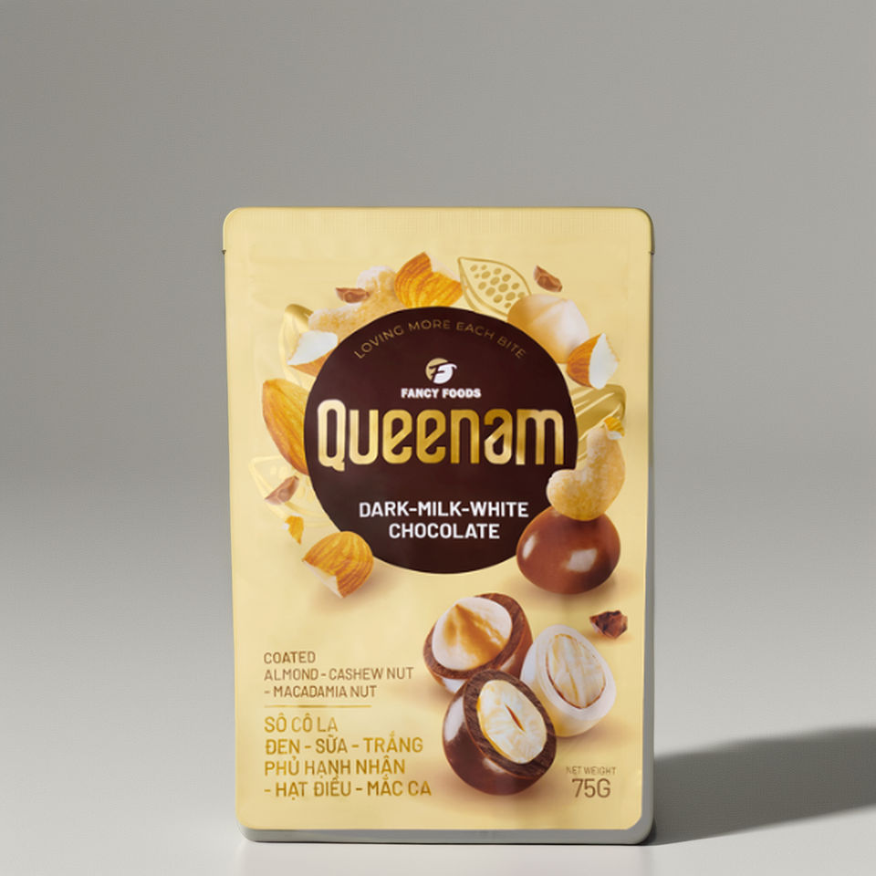 Hot Selling OEM Wholesale Halal Good Price Premium Mix Chocolate Flavour Coated Almond Cashew Nut Macadamia Nut 75G Queenam