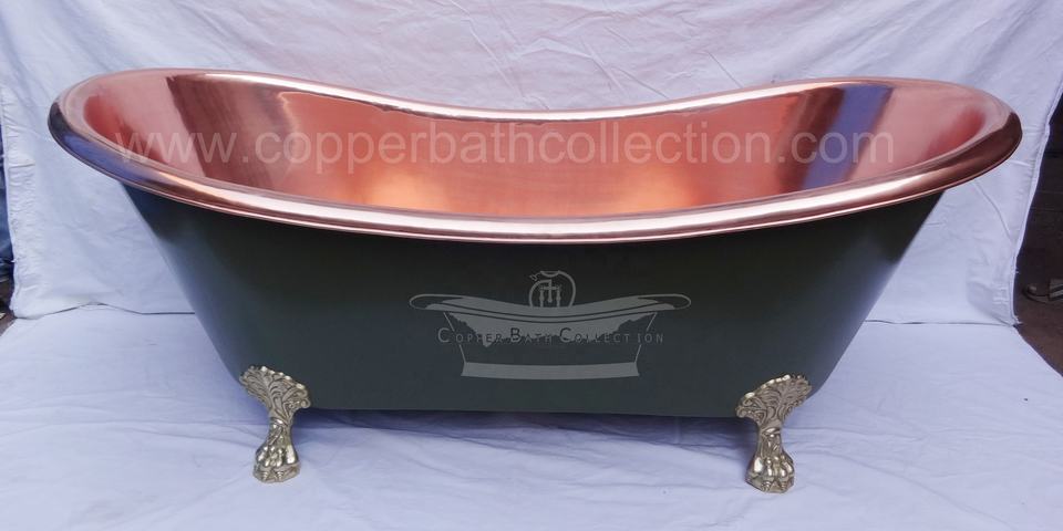 Hot Selling Modern Design Style Freestanding Clawfoot Copper Drainer Shiny Polished Olive Green Exterior Soaking Hotels Full