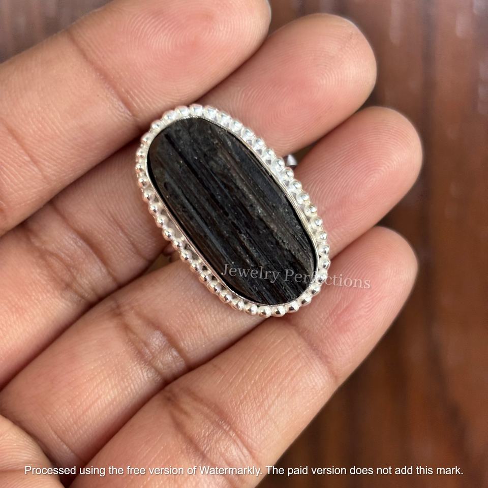 Hot Selling Original Black Tourmaline Druzy Gemstone 925 Sterling Silver Oval Cut Ring for Women Factory Price Jewelry