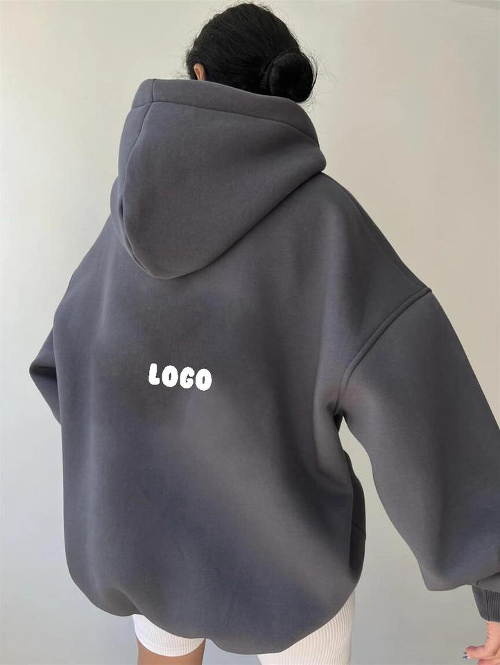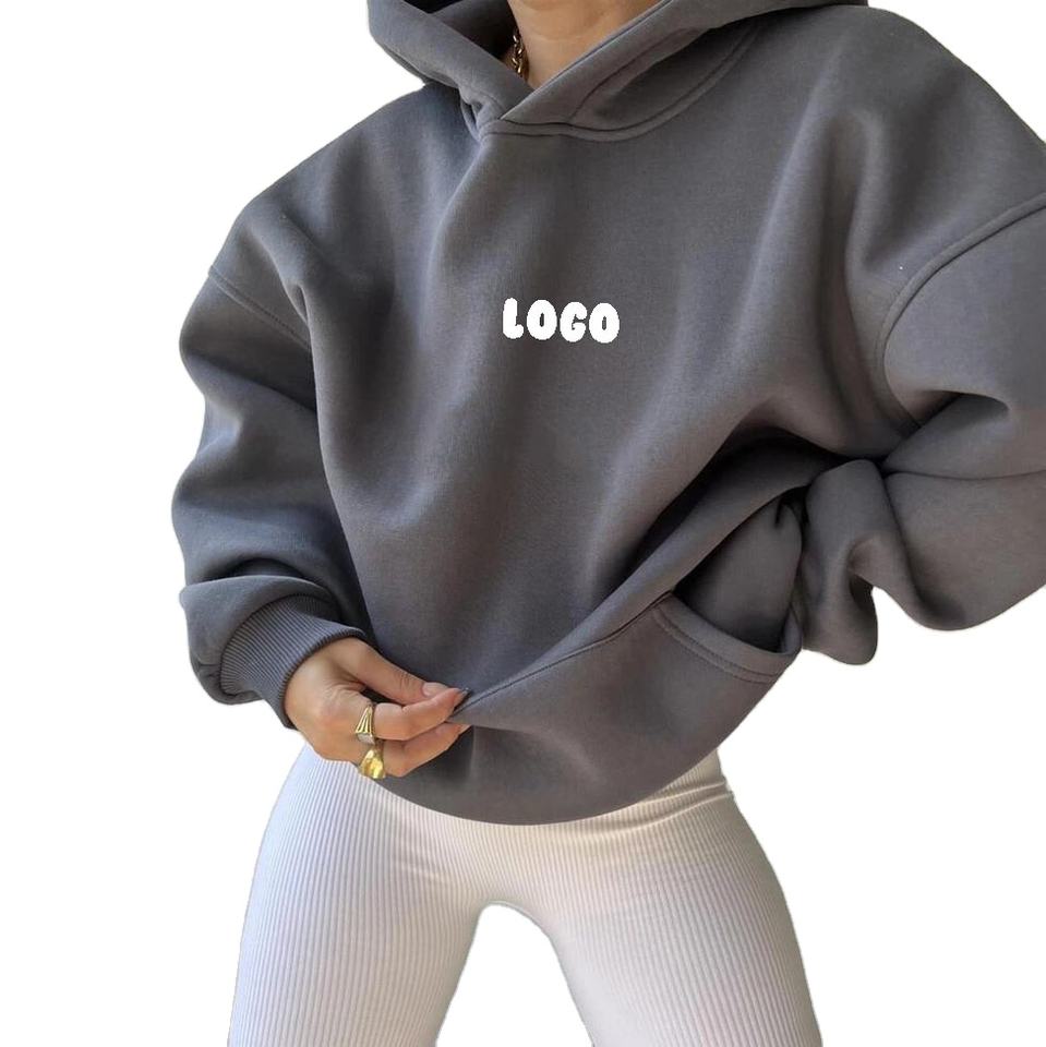 Hot Selling Oversized Women's Drop-Shoulder Hoodies Stylish Sweatshirts for Winter Casual Streetwear Front Logo
