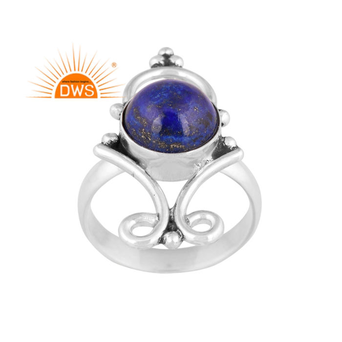 Hot Selling Oxidized Sterling Silver Natural Lapis Lazuli Gemstone Statement Ring Custom Jewelry Manufacturer