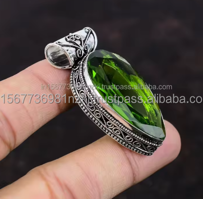 Hot Selling Peridot 925 Sterling Silver Faceted Pear Shape Peridot Gemstone Pendant Jewelry May Birthstone Gift For Christmas