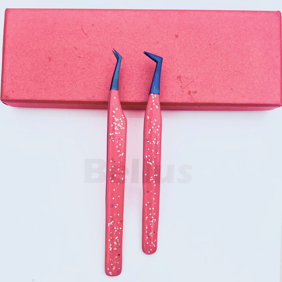 Hot Selling Pink Glitter Volume Classic Lash Tweezers Multi Tip Styles Fiber Tip High Precision Custom Logo Sustainable Steel