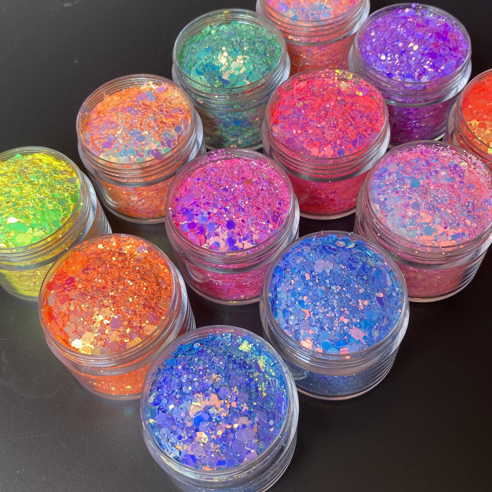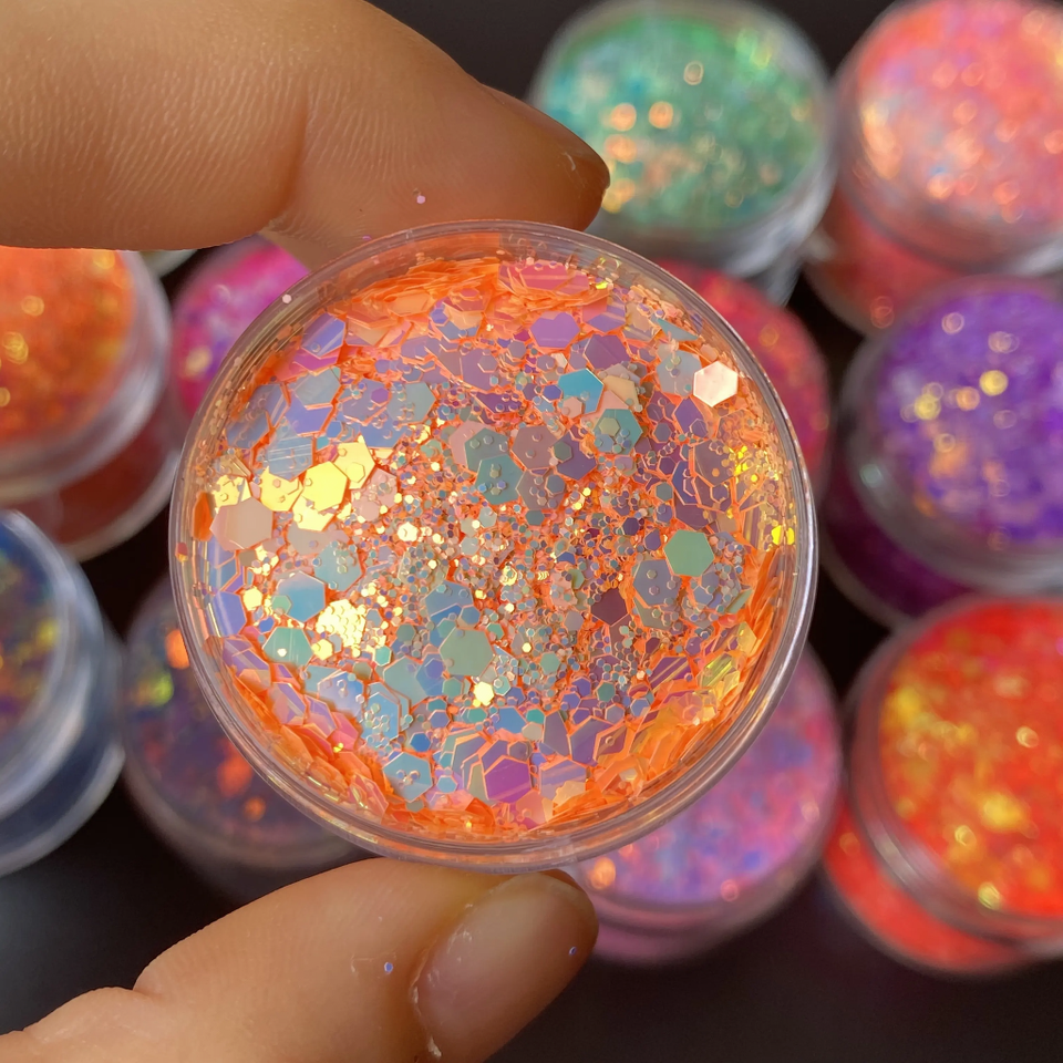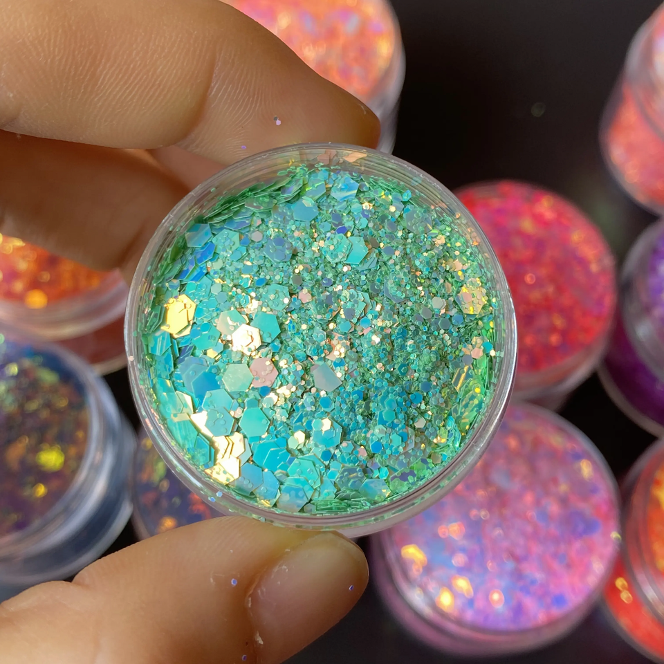 Hot Selling Polyester glitter Bulk Chunky Mix High Sparkly Loose glitter flakes Pearl Iridescent Glitter for Snow Globe Cups