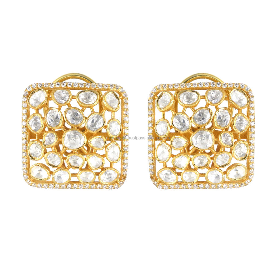 Hot Selling Premium Handmade Women's 925 Sterling Silver Wedding fine Jewelry Moissanite Polki Fashionable Tops Earrings