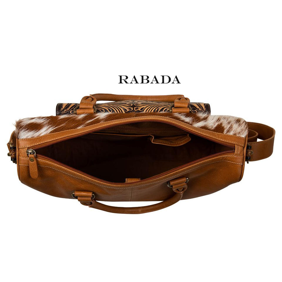 Product:Hand Tooled Hair On Leather Messenger Bag
