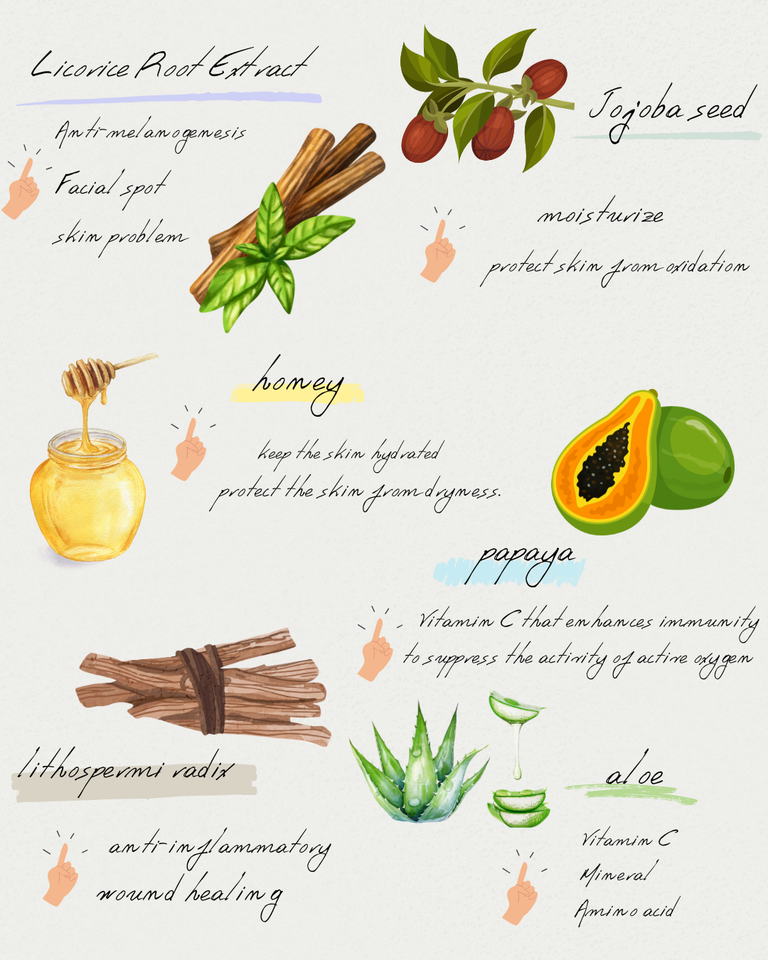 Other Ingredient:Papain/aloe extract/ jojoba oil/ honey