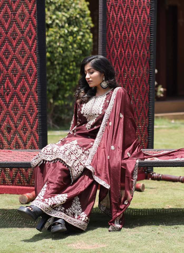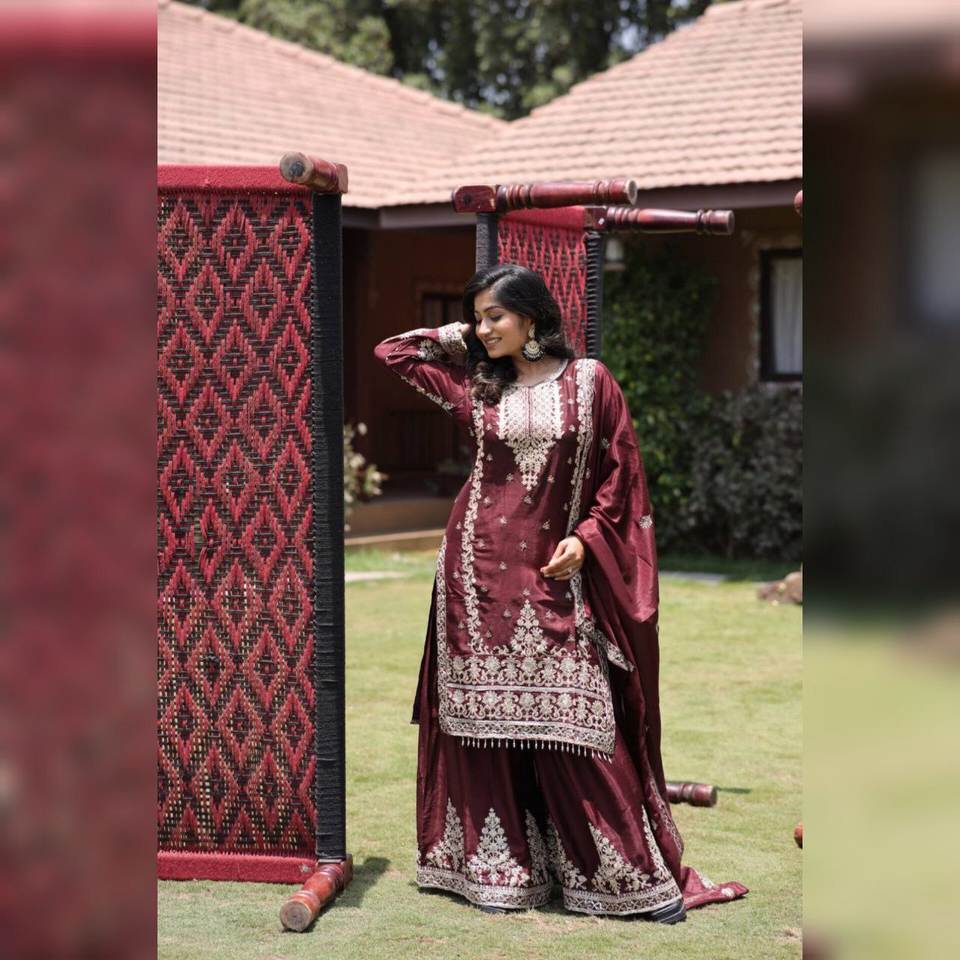 Plazzo Fabric:pure Chinon Silk Fabric (Fully stitched)