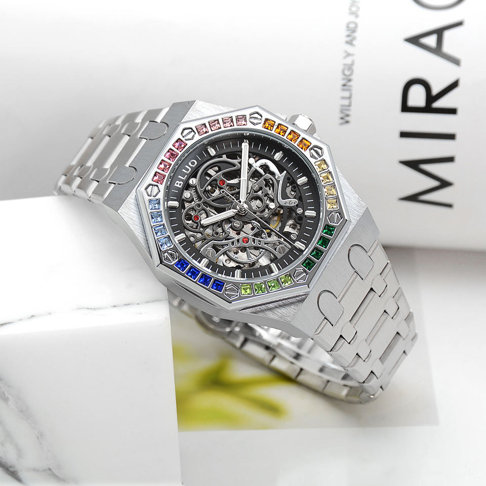 Hot Selling Rainbow Bezel Luxury Alloy Automatic Mechanical Watch for Men