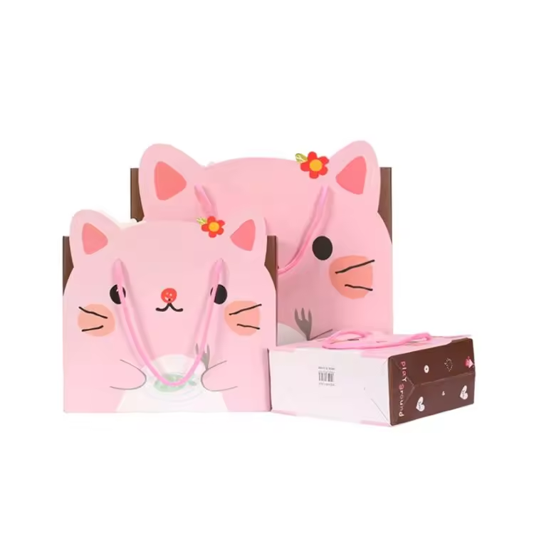 Hot Selling Rectangle Shape Cat Cartoon Gift Packaging Paper Bag