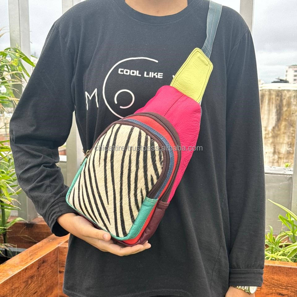 Hot Selling Recycled Leather Women's Sling Bag Handmade Colorful Leather Crossbody Chest Bag Western Conceal Carry Shoulder Bags