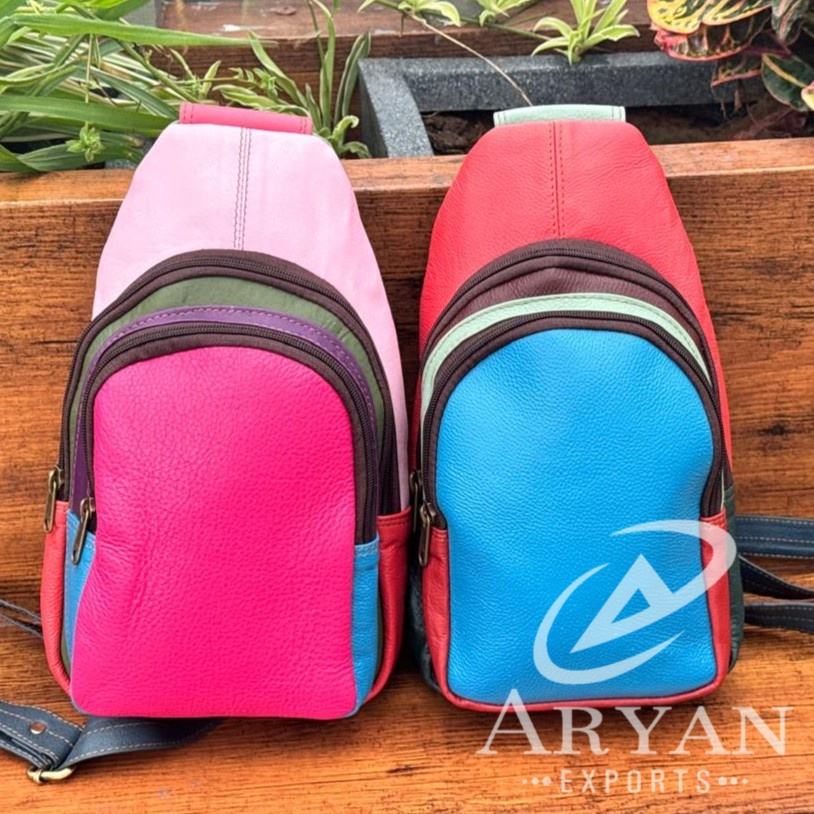 Hot Selling Recycled Leather Women's Sling Bag Handmade Colorful Leather Crossbody Chest Bag Western Conceal Carry Shoulder Bags
