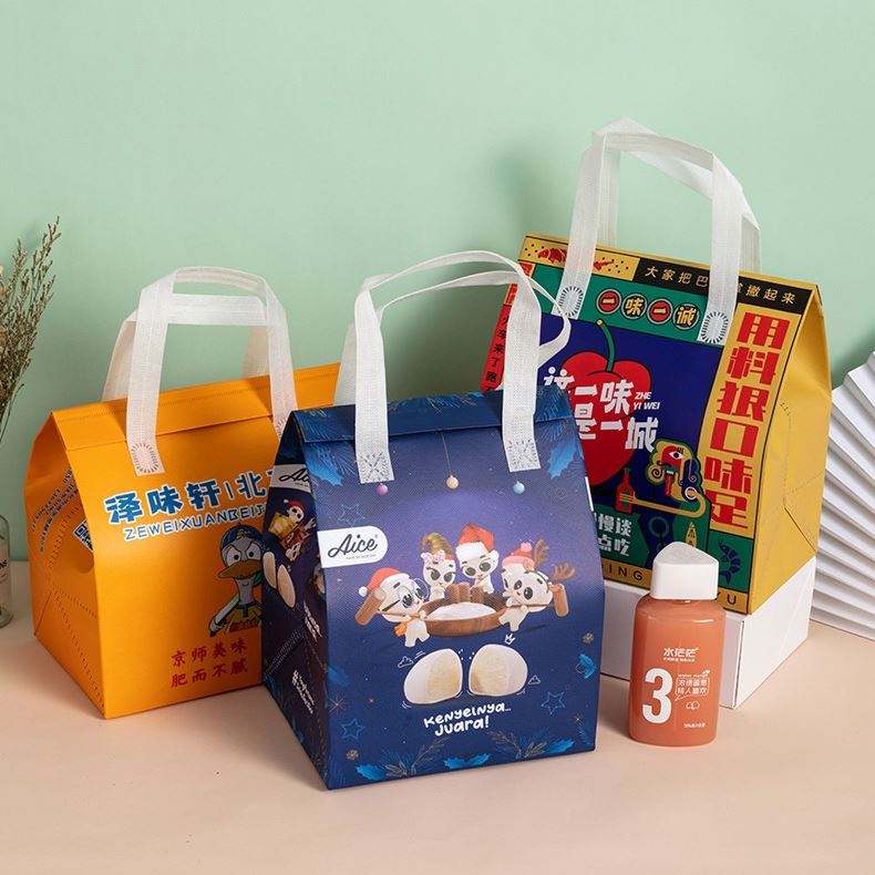 Hot Selling Reusable Non-Woven Laminated Insulated Handheld Takeaway Bags for Catering Food Milk Tea Cake Packing Letter Pattern