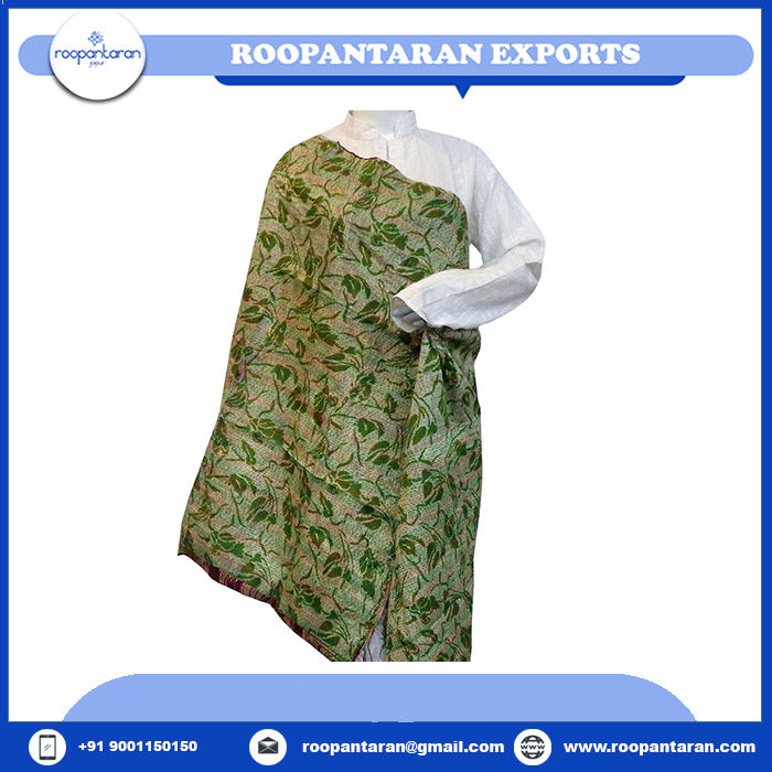 Hot Selling Reversible Silk Stole for Adults Exquisite Hand Crafted Cotton Kantha Embroidered Traditional Scarves & Shawls