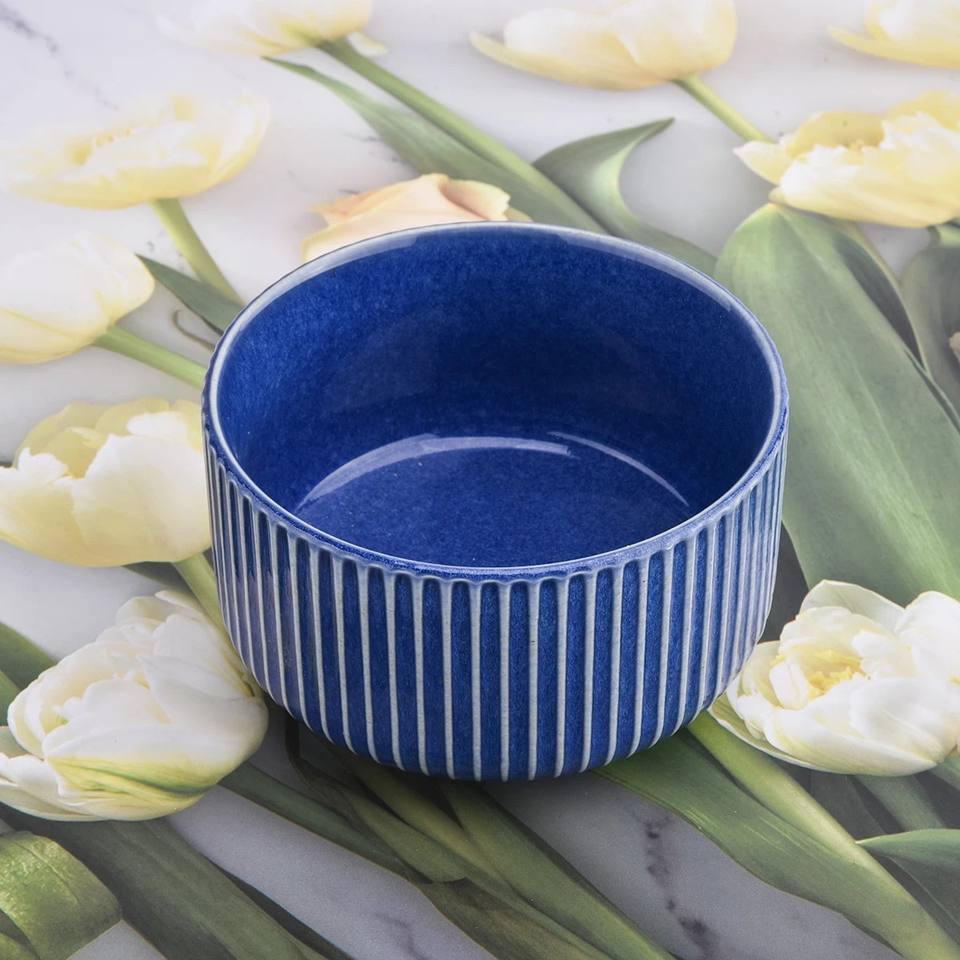 Hot Selling Ribbed Ceramic Candle Vessel Deep Bowl Heat Resistant Thick Wall Smooth Glaze Durable Home Decor Multi Wick Holder