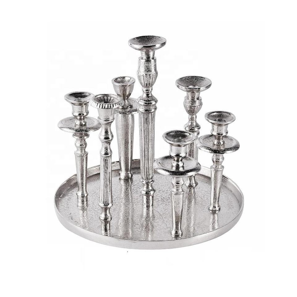 Hot Selling Rough Nickel Finished Candle Holder Plate With 8 Candle Holders Made in Cast Aluminium Home & Festive Decoration