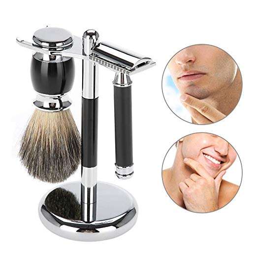 Hot Selling Shaving Brush and Razor Set Badger Hair Brush Knot Shaving Brush Double Edge Safety Razor Kit Long Handle DE Razor