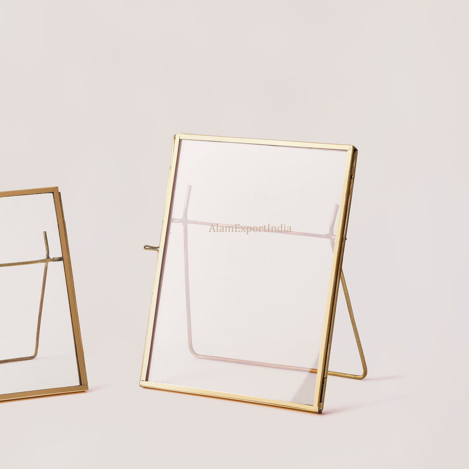 Hot Selling Shiny Gold Finished Clear Glass Tabletop Decorative Photo Holder Pressed Flower Picture Reasonable Price Photo Frame