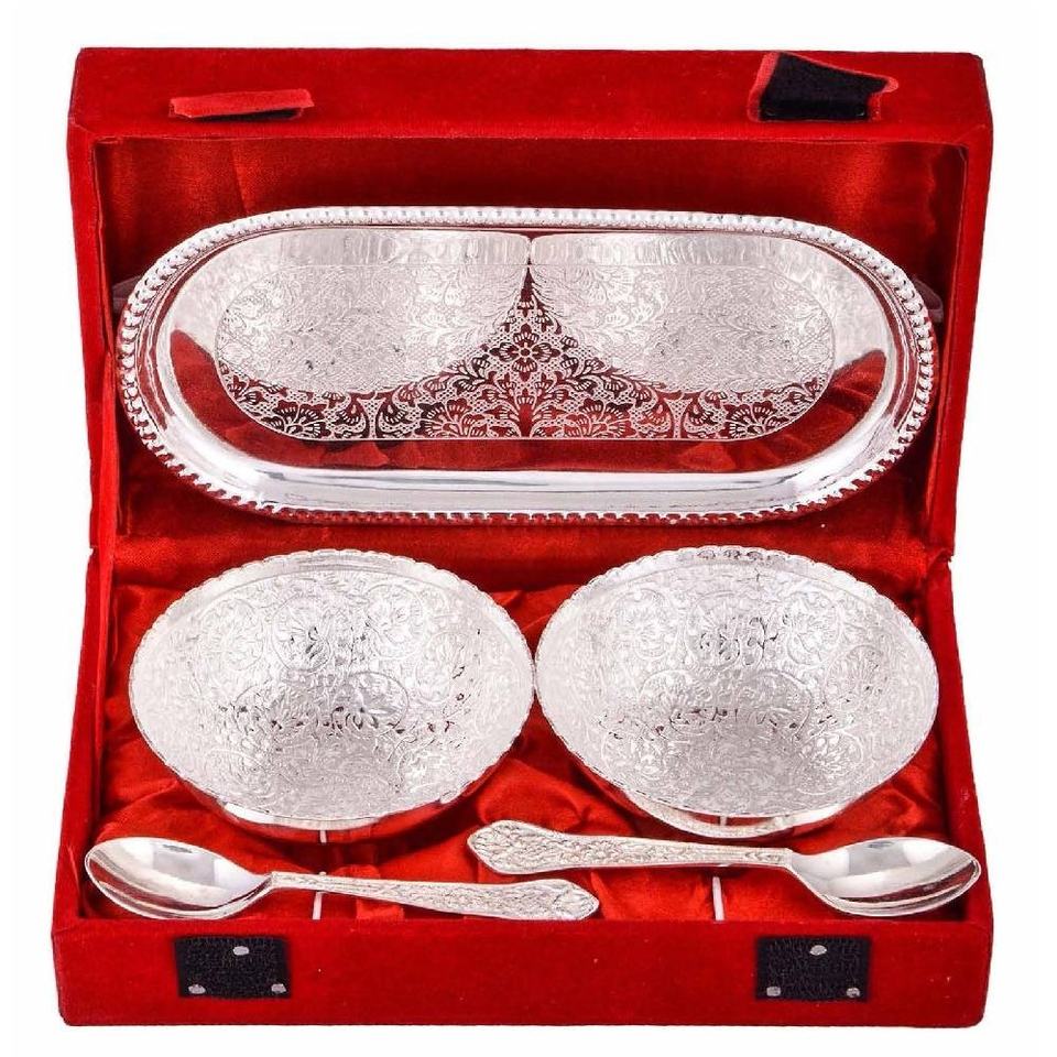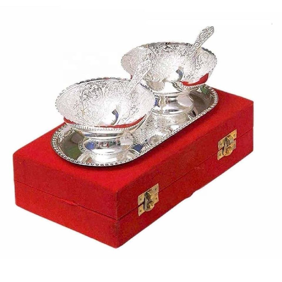 Hot Selling Silver Plated Bowl with Spoon in Red Velvet Box Dry Fruits Dessert Serving Bowl Metal Bowl Perfect Wedding Gift