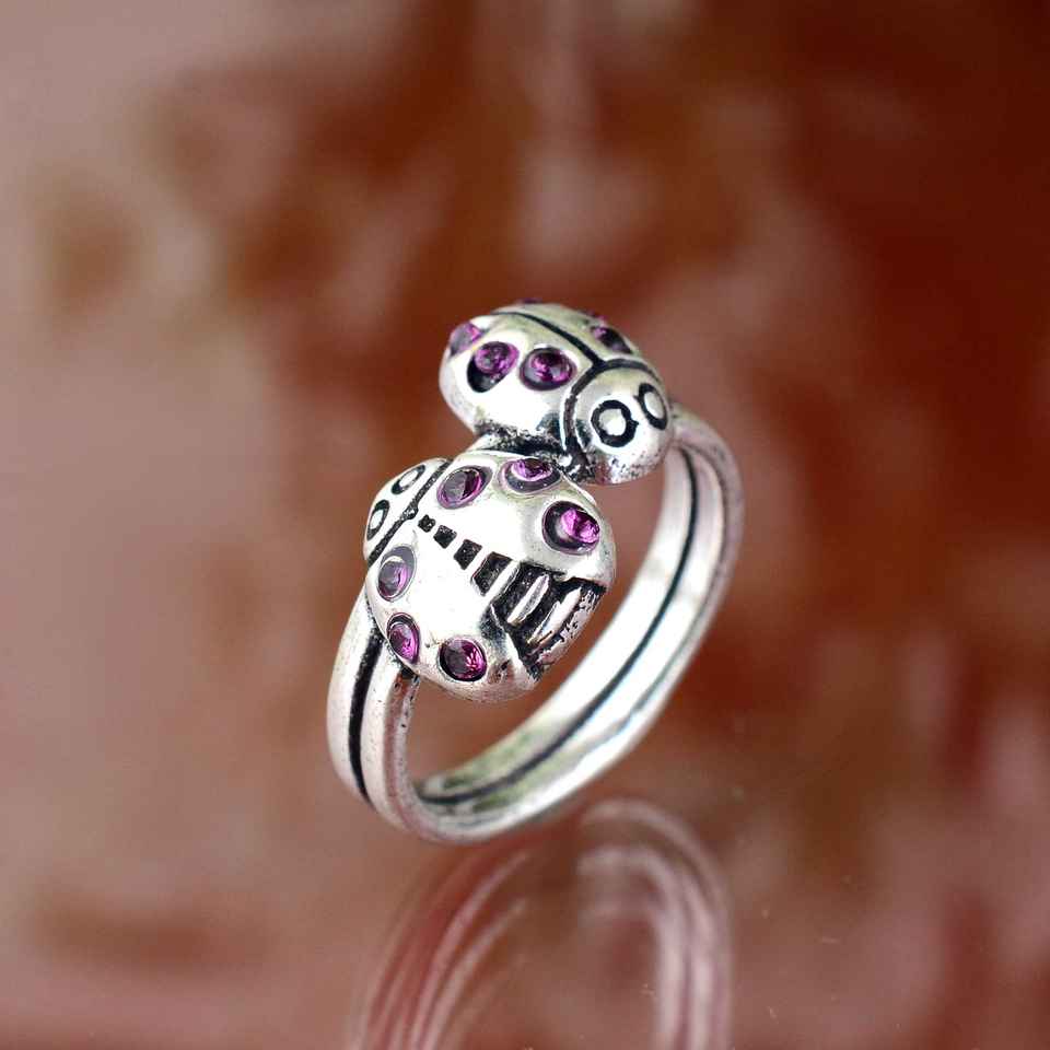 Hot Selling Silver Plated Ladybugs Ring Insect Band Brass Finger Ring for Women Fashionable Jewelry