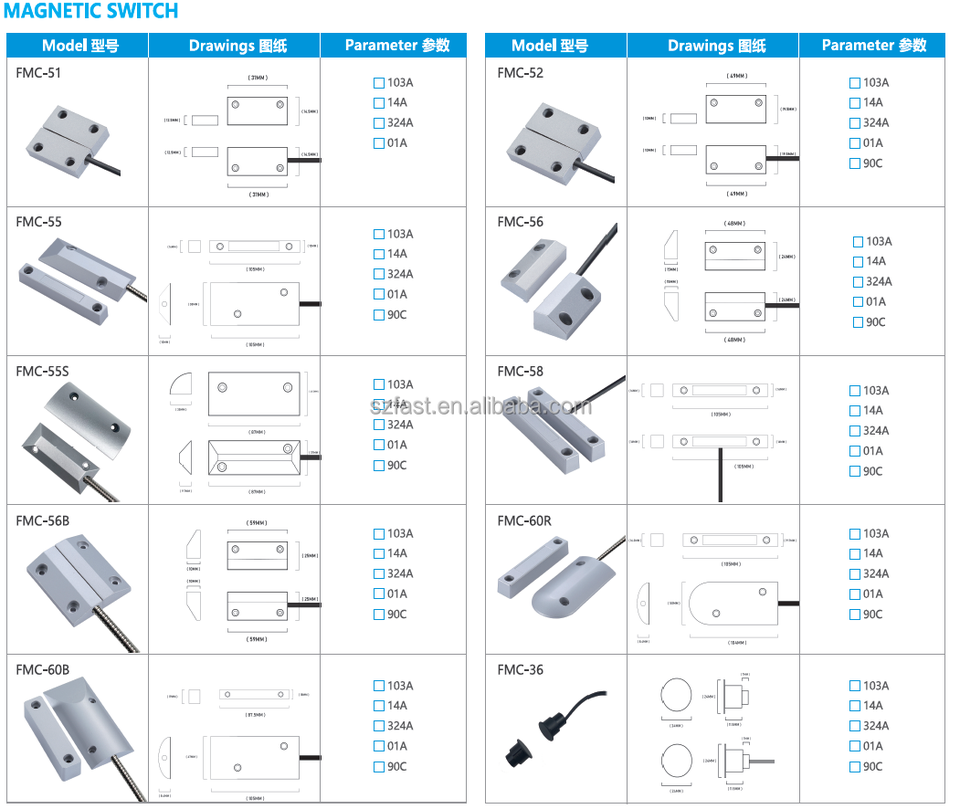 Hot Selling Silvery Color FMC-58 Zinc Alloy Proximity Switches Magnetic Sensors for Door Alarm System