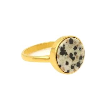 Natural Dalmatian Jasper Sterling Silver Gold Plated Ring