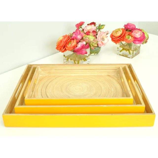 Bamboo Rectangle Serving Tray With Handle Lacquer PaintProduct name