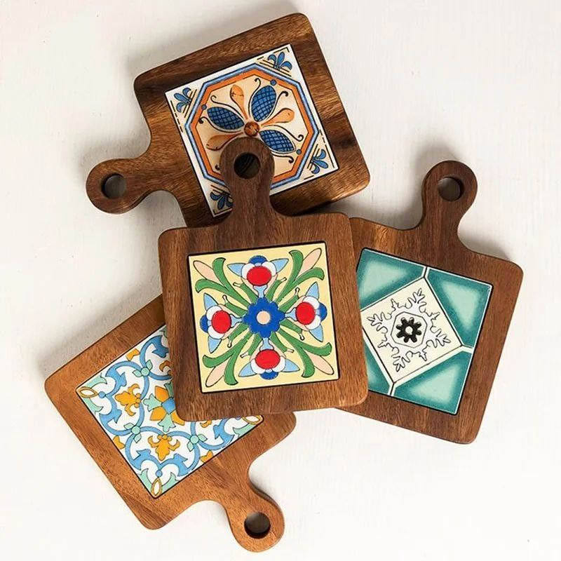 Hot Selling Square Rattan Bohemian Style Eco-Friendly Coaster Set Holder for Table Decor Customized Design Color Vietnam Factory