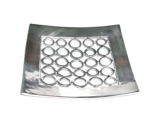 Hot Selling Square Shape Cast Aluminium Plate in Mirror Polish with Circular Rings Metal Fruit and Salad Serving Plate