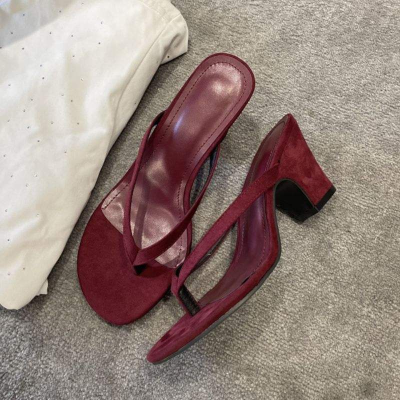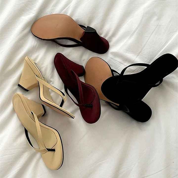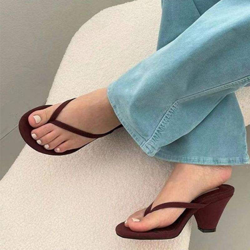 Hot Selling Square Toe Flip Flops Chunky Low Slippers Shoes Lady Heels for Ladies