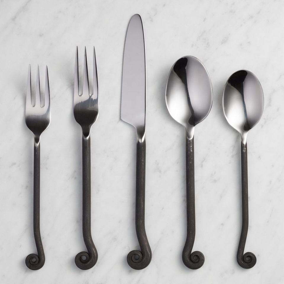 Hot Selling Stainless Steel Cutlery Set of 5 Pcs. Polished With Knot Handle Black Colored by Axiom Home Accents