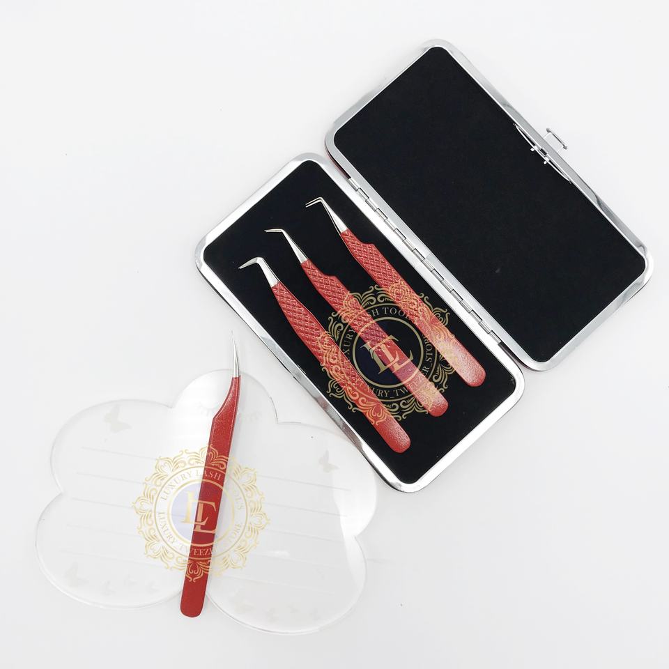 Hot Selling Stainless Steel Eyelash Extension Tweezers Silver Point Red Powder Coating with Magnetic Case Wholesale Price Offer